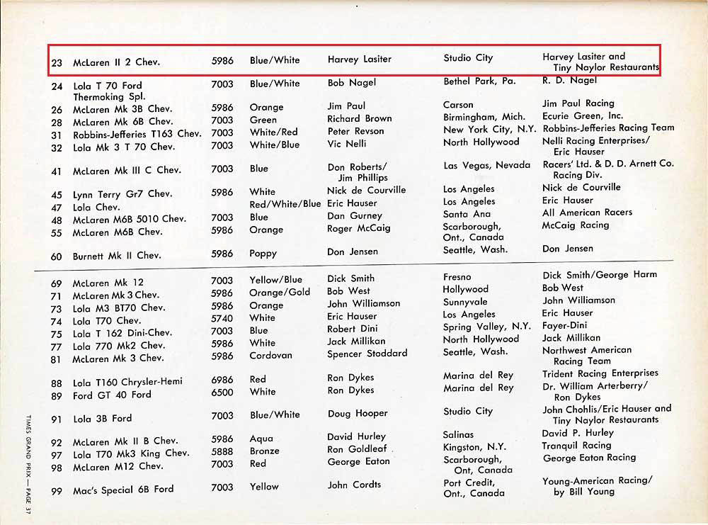This is part of the entry list for the 1969 Riverside Can-Am. This was Round 10 of 11 in that years championship. Chad, I notice Doug Hooper is also entered to drive another McLaren in this race?