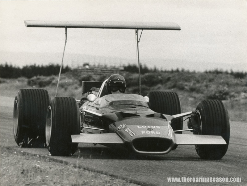 Jochen Rindt brakes heavily in his Lotus 49BT during practice for the 1969 Teretonga International. He clocked fastest time in practice but then broke a driveshaft at the start of the race.
