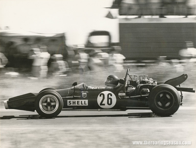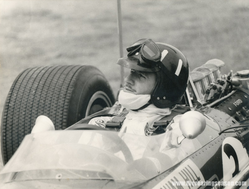 The photo of Jochen Rindt braking is interesting in that the Lotus badge on the front of the car has a black background instead of the normal green background in memory of Jim Clark's death the previous April (1968).