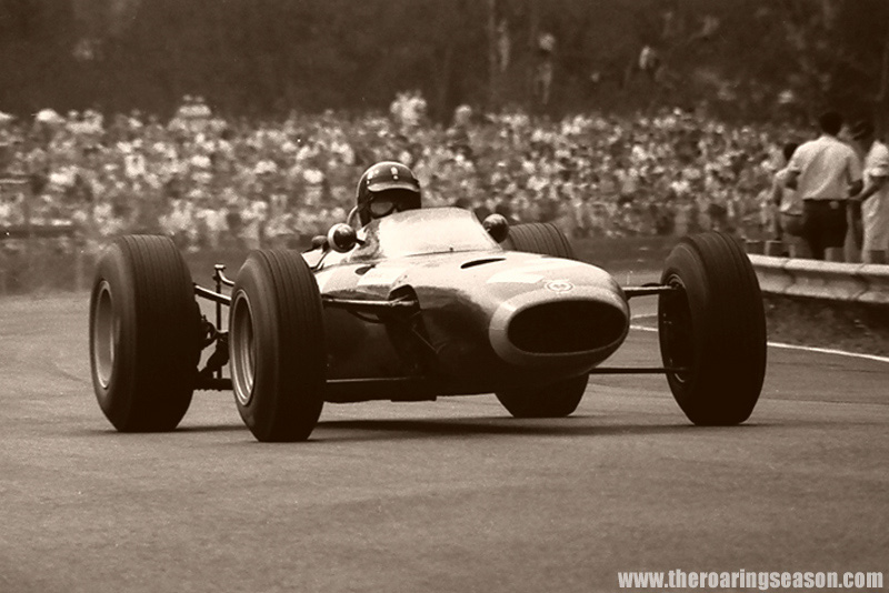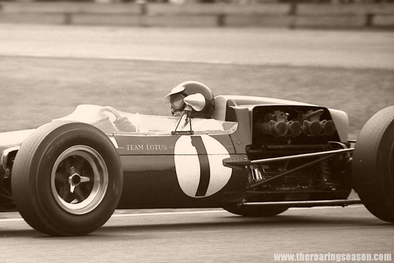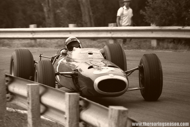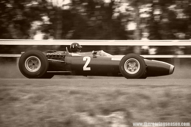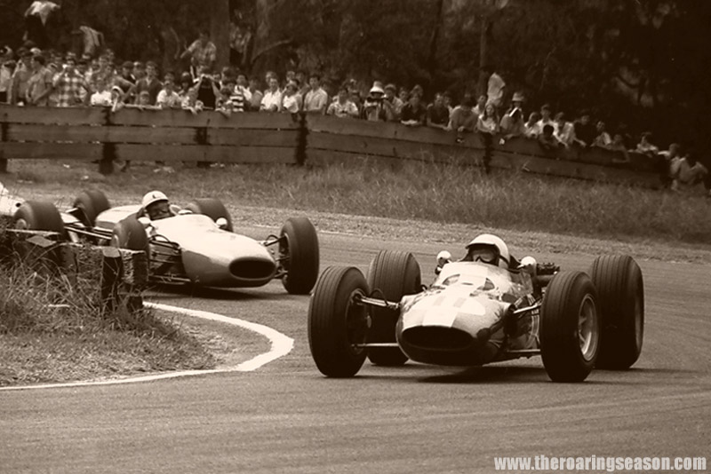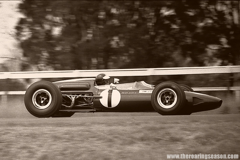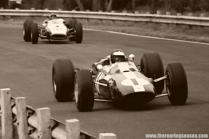 Here is pole man and eventual race winner Jim Clark, in his Lotus, while in behind is young Kiwi racer Dennis Marwood, on his way to an excellent 10th outright in his Cooper.