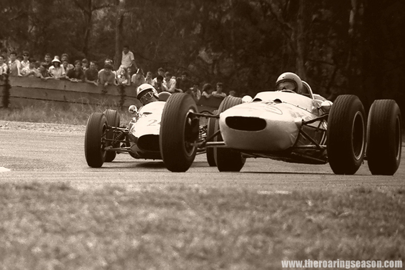 Here is another shot of Kevin Bartlett, in the Mildren run Brabham, leading John McDonald in the Cooper. Interestingly, McDonald was supported by Bill Patterson Motors, which from 1975 - 1977, went on to support Peter Brock when he split with the Holden Dealer Team at the end of 1974.