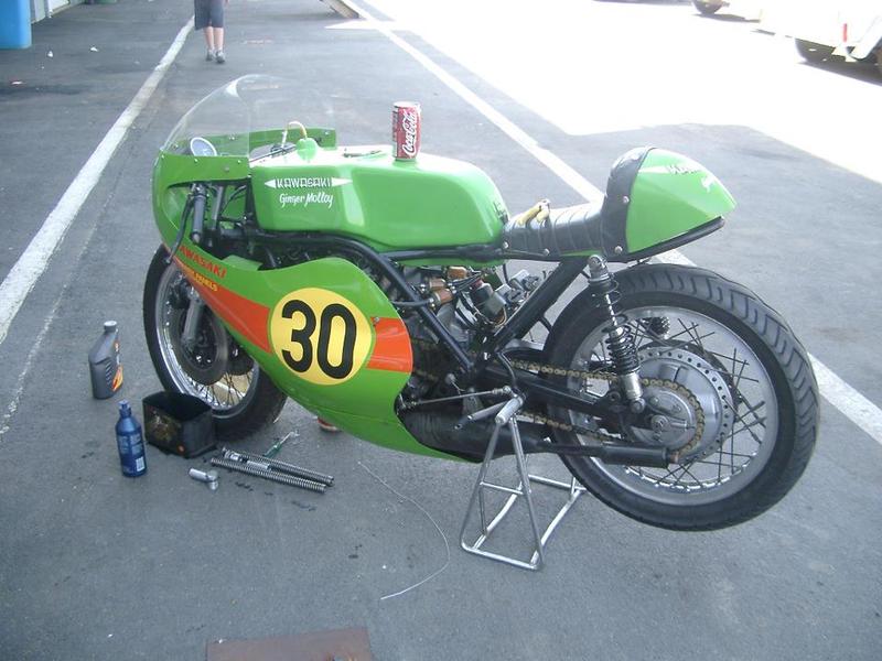Correct, the Molloy bike lives in Vic these days and is owned and ridden by Brendan May : his brother Brad rides the similar ex-Kenny Blake H1-R. I suspect the pic is from the early 2000s, as we don't see them much these days, but the Period 4 class they run in has a 1972 cutoff, and I'd say the discs are off a 1972 Suzuki GT750.