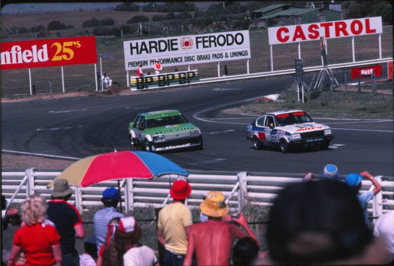 Looks about midday Bathurst 1980 (yes I walked my feet off!) and the O'Brien/Morris Falcon rounds up the Price/Jonas Gemini coming on to Pit Straight.