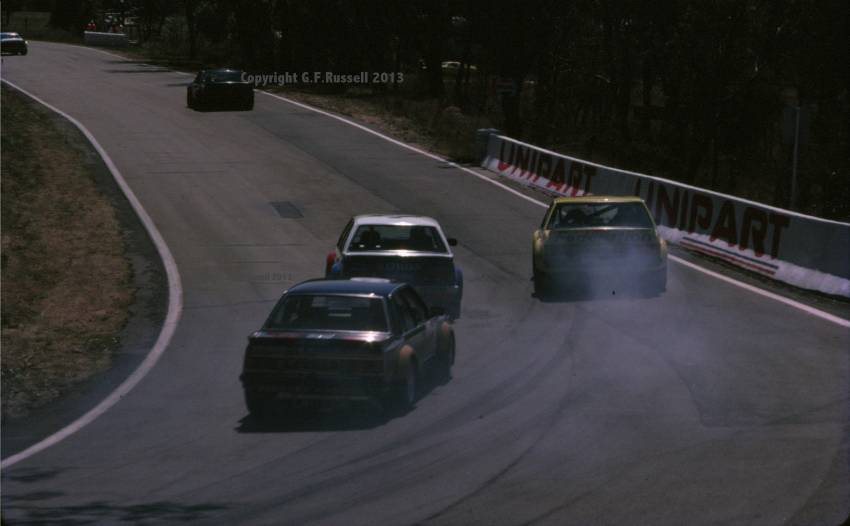 Also interesting to see Allan Moffat's ill-fated XD at Bathurst. Note also in this shot the Paul Gulson/Pete Geoghegan Commodore (the black and gold car) which plugged around all day almost unnoticed from its 13th position grid spot to eventually finish 3rd. Geoghegan wasn't doing a lot of racing by this stage, but showed he still had it.