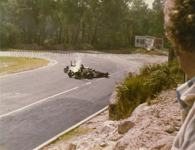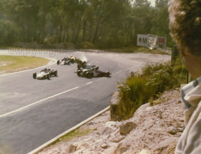 Continuing with the Amaroo Park Formula Ford theme, I captured an incident on the instamatic on April 19, 1977 - my notes say that a spin by Conway was hit by Barnacle, then McLucas then Bretland leaving a pile of cars on the corner. To my knowledge everyone was uninjured, but I guess it would have needed a bit of work to get the cars on track again. If any forum members have further knowledge of this incident, your comments would be welcome. These photos have never been published previously.