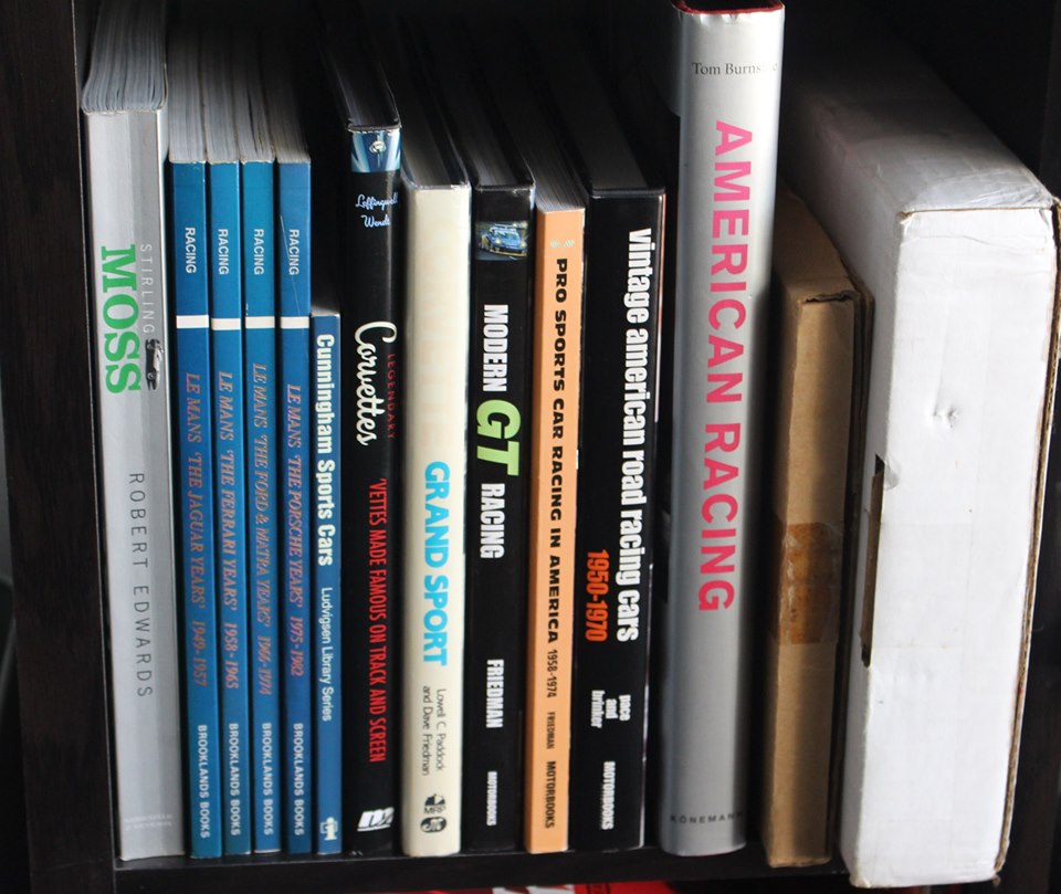 In the cardboard cartons are the Vintage Motorsport collection " The Specials " and the big one is the Corvette Book by Dick Guldstrand - self published and marketed - mine I got around 2003 and it arrived in a US Postal Service Mail Sack with a lock on it - I wrote back and said did they want and was " keep it '.