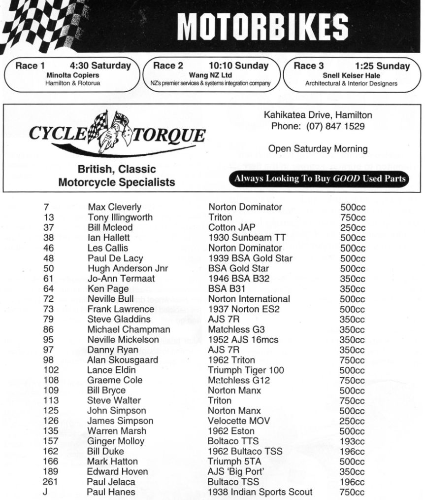 In 1994 the was a race on Saturday and two races on Sunday.