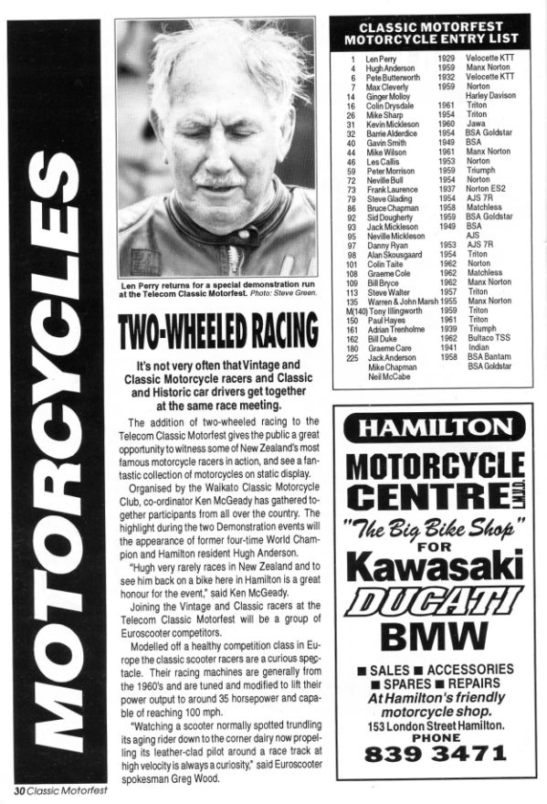 In the Issue will be the story of the Telecom Classic Motorfest events of 1993 and 1994 - The article has been written by Laurie Brenssell - who was the Chairman of the organising committee.