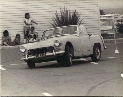 Not at Cosseys, but an NSCC event at Mangere Town Centre, back in the day when no shops were open on Sunday and a lot of sport was played in supermarket / shopping centre carparks, this is 1974, just before the roll bar [ by Reg Cook ] was put into the Sprite so I could do sprints / Hill Climbs and other events, already used in trialls and very close to the ground