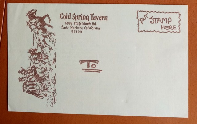 Cold Spring Tavern brochure with a History of the Tavern, near Santa Barbara up in the Hills behind the city.