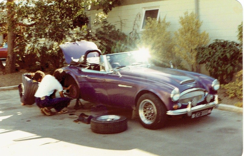 working on Frank Karl's Healey at the Motel