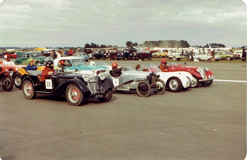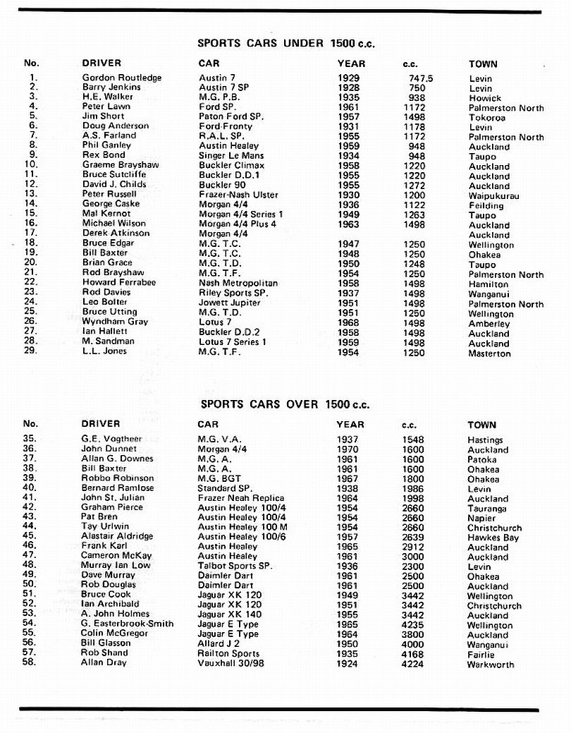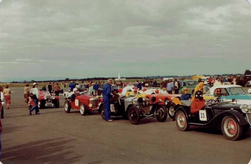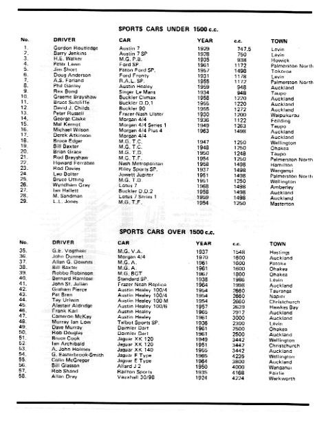 Car 60 is 1964 Capella. Along side I think is 'Jilly' Cooper- Dave Sillcock, then (18) The Citroen Spyder owned by Ralph Smith probably with family member driving .Front row near is Gee Cee Ess, then my Ex Palmer 1960 Lotus 20B with my brother driving along side me in my 1955 BCM Special (16) and the Ransley Riley with Malcolm or Eileen McMillian. Chris Read, Arrowtown.