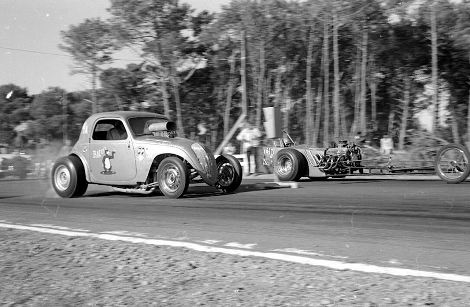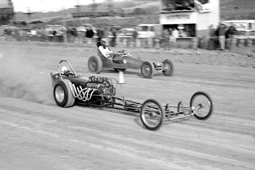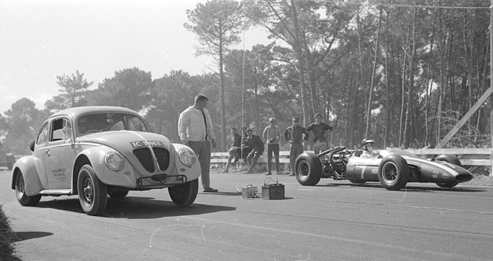 Edit : Rex Ramsey's Le Grand Mk 7 at Bay Park Dec 68 with Moloney's Cooper disappearing out of shot left.