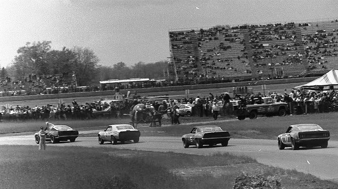 Allan Moffat in DeKon Chevrolet Monza # 7 coming up to the start at Baypark Raceway. Dec. 1975