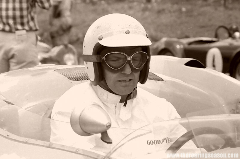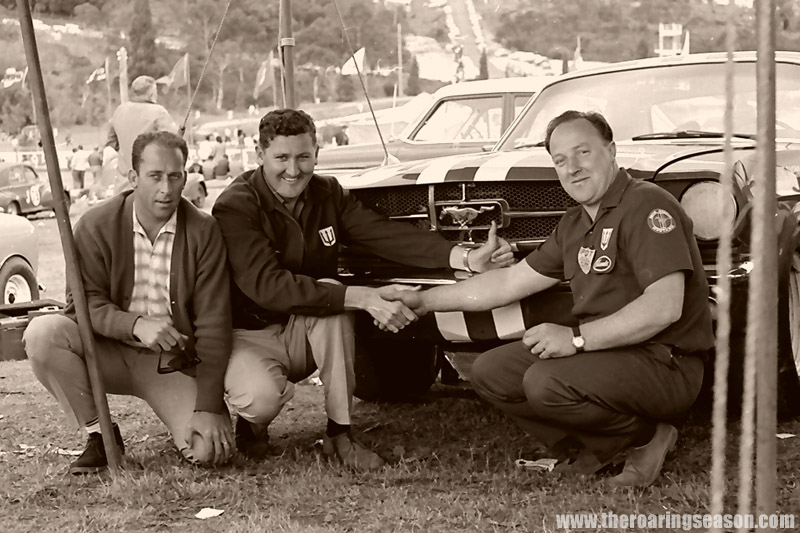 In the background is Ken Miles in the 427 Cobra, the other car partially visible is probably Greg Cusack's Lotus 23. This is on the grid for the heat prior to the Australian Tourist Trophy at Lakeside in November, 1965.