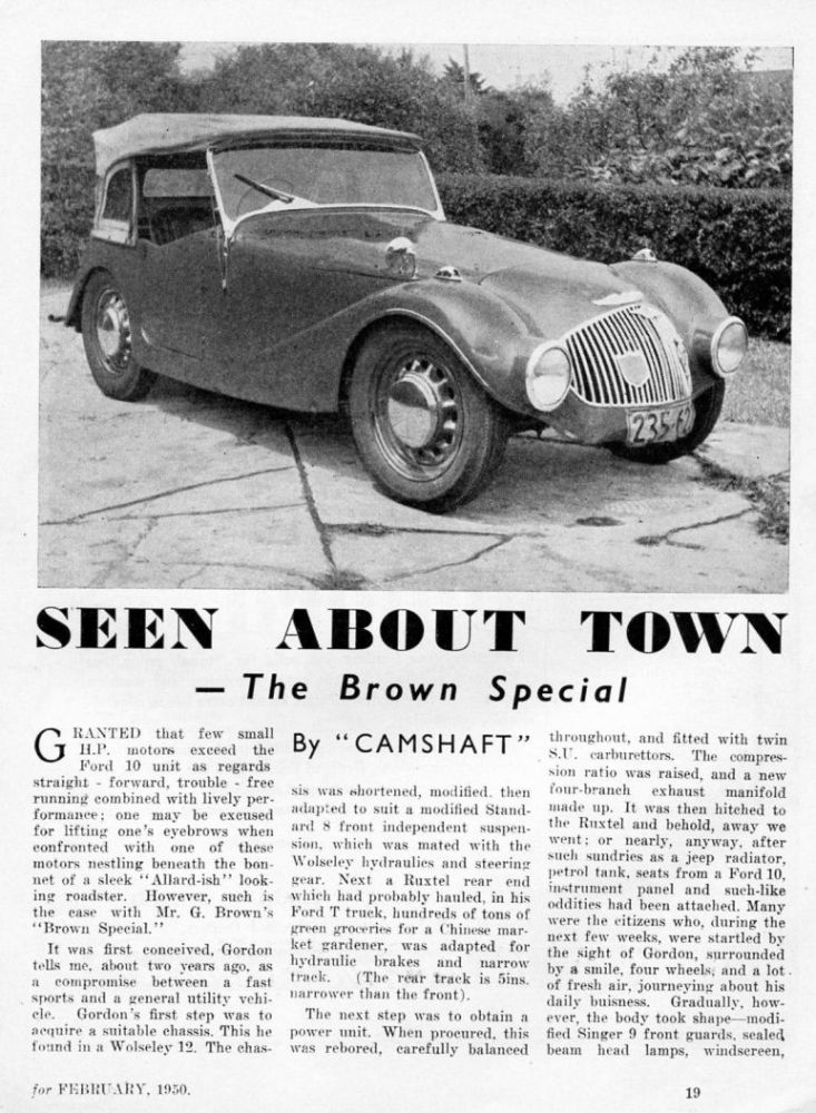 Strange as it may seem, it should include Gordon Brown's Ford Ten Special. No, not a high performance item, but the forunner and insperation for what became an extremely popular trend, as should be pointed out in relevent descriptive text. A local sports car magazine now many years defunct, carried a very good article on the car some seventy years ago. Put out a signal and try to locate a copy.