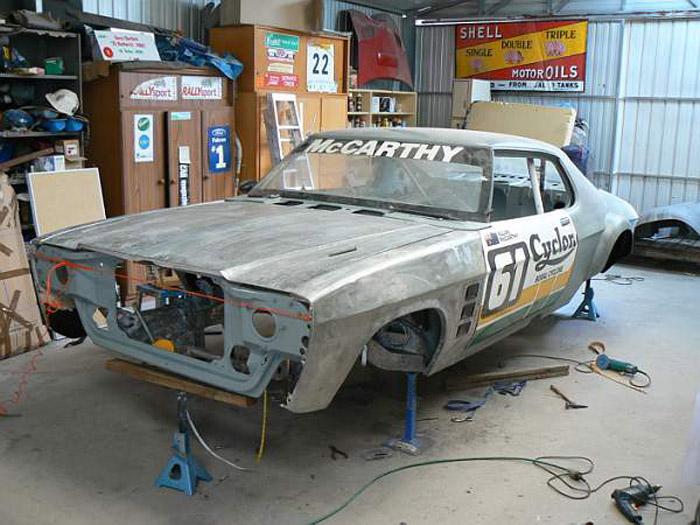 Geoghegan entered the Toby Lee series in 1973, driving a Porsche 911 owned by wealthy businessman Laurie O’Neil. The sophisticated little Porsche’s were formidable on the challenging Oran Park layout against the V8 competition, and 911 pilot Bill Brown almost won the series. But O’Neil knew he’d have to invest heavily for 1974, to give Geoghegan any chance against opposition that was both more purposeful, and expensive, and set about having John Sheppard build him a new Holden HQ Monaro coupe. Sheppard had already built a number of very successful racing sedans, including Geoghegans ATCC winning (1966, 67, 68, 69) Mustangs, and Bob Janes HQ Monaro and ATCC winning (1971, 72) ZL1 Camaro.