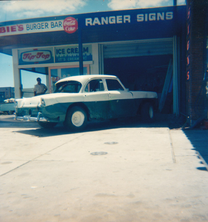 Rod,you would be right with the car, but not the colour scheme. Barry had it always white with Byan Bell Tuning on it, think he had a racing Huskyor Cob with his name on as well.I will go out on a limb here and say that after the last race at Waikaraka Park by Barry, those there will remember Trevor Morris deliberately t boning this car and it ended up in the fence.The car had been sold prior to this race to Harvey Brewer who ran a 100E Prefect with Davies Pumps, Station Rd, Penrose on it. It was this colour scheme=green over white.,So this is the bros car, after being straightened , painted Harveys colours and going to Ranger signs to be sign written with Davie Pumps and Ranger Signs-just as we remember it. Harvey did not have the distinctive driving style of Barry-throwing it sideways halfway down the straight.So, what happened to the car and the motor with the Raymond Mays head and webers? Gerard, Rod how does this sound to you?