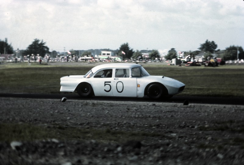The sports car waiting to come up to the start line is Beowulf. Built in the mid sixties by Ian Horley from Palmerston North and raced very successfully by him. Ian was 6th fastest and second in class behind Peter Ransom in a Lancer. The car is still very active in Historic Racing. Ian is alive and well and turns up at a lot of meetings astride a 600cc Suzuki.