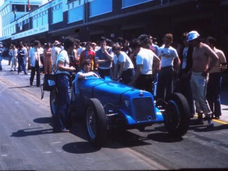 Willie Green in the GP Delage at the reopening of Donington May 28th 1977. Yes, the sun does shine in the UK now and again...