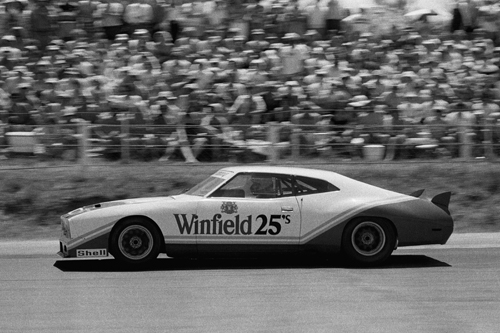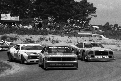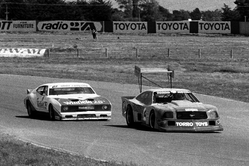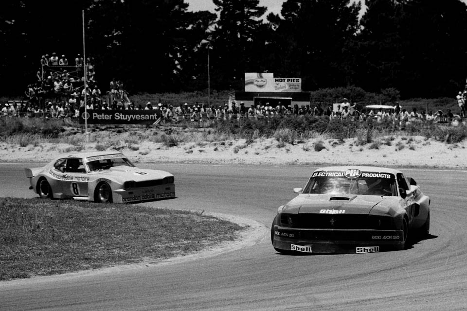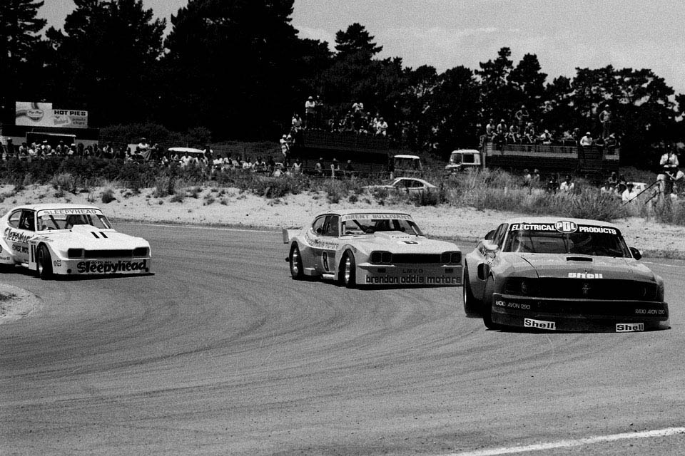 However, with several large capacity cars having sat around redundant, plans were put in to place to create an Open Saloon series, in January 1979, in which there were essentially no rules. The series was held at Bay Park, Pukekohe, and Manfeild, with each circuit having two races, each of which was a handicap start based on qualifying times. Aussie racer John Briggs put up a strong performance in the opening round at Bay Park in the ex-Red Dawson Chevy Monza, and took the fight to Jim Richards in his Falcon XC hardtop. But from there onwards, there were really only two cars in the running, Richards' Falcon and Leo Leonards PDL Mustang II. the PDL II struck problems at Bay Park, but really took the fight to Richards at Pukekohe, although the Falcon was slightly more stable on the bumps. But by Manfeild, Leonard was the fastest, if only just, and these two destroyed all existing saloon car lap records.