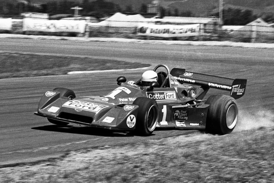 Kevin Bartlett, cranking on some opposite lock in the T400. KB is best remembered by many race fans for his three years in the Channel 9 Camaro from 1980 - 82, but he was born to drive an F5000, and man-handled these cars like few others could. Open wheeler racing was always his first-love.
