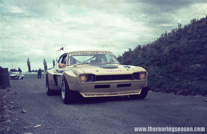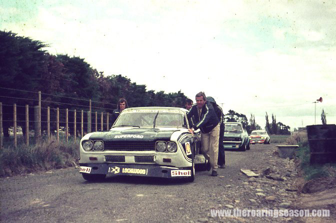 Couple of interesting photos of the Fahey Capri, at Manfeild. This is possibly Faheys last ever race meeting before retirement.