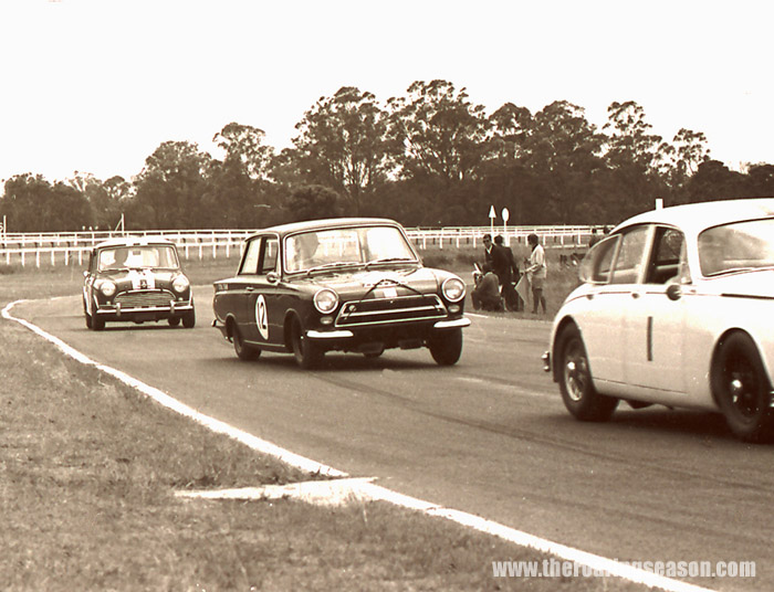 Bit more touring car action, with the EH Holdens of Norm Beechey and Brian Muir, plus Bob Jane's Jag.