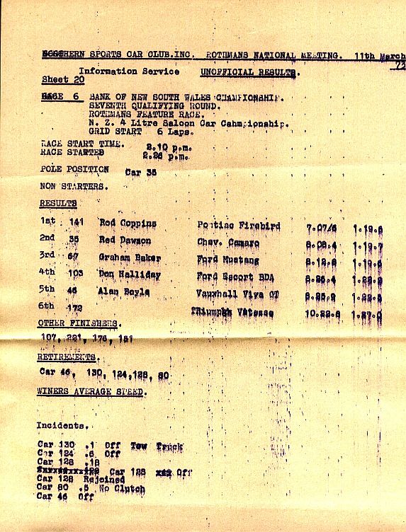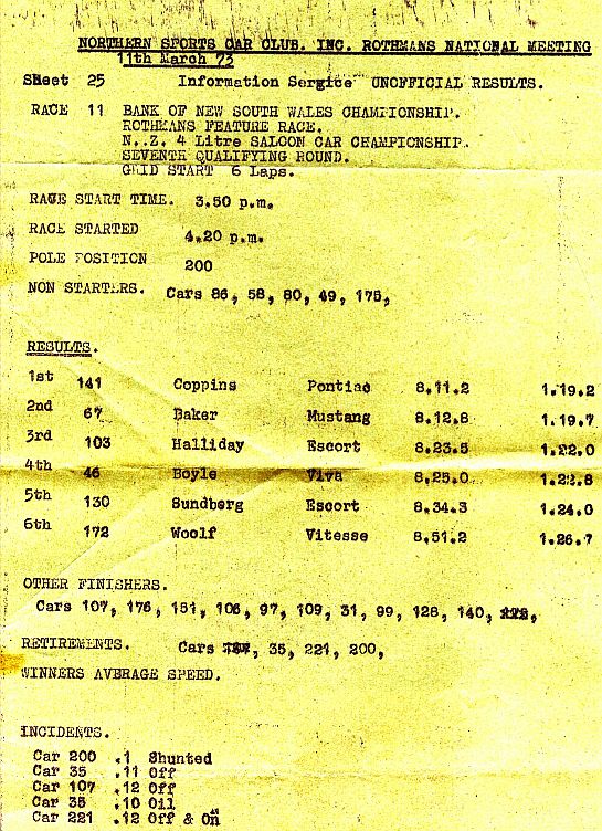 Here's something different. A couple of Unofficial Result sheets showing Rod had a successful day at Pukekohe on March 11, 1973.