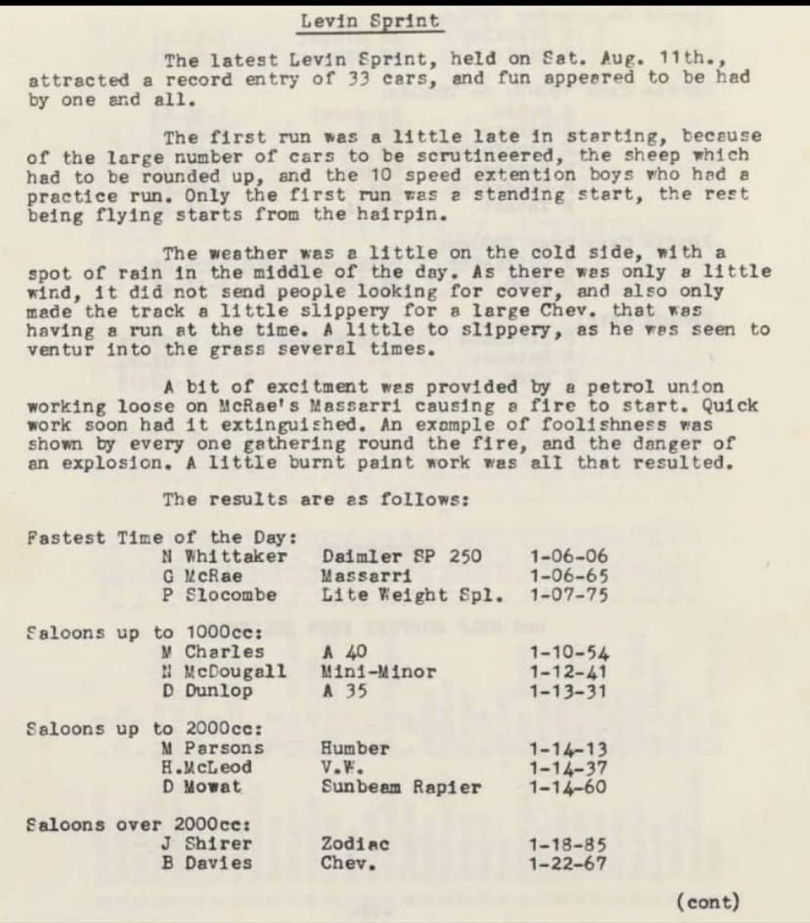 Notes about the incident from the Wellington Car Club Bulletin - archive from Milan Fistonic.