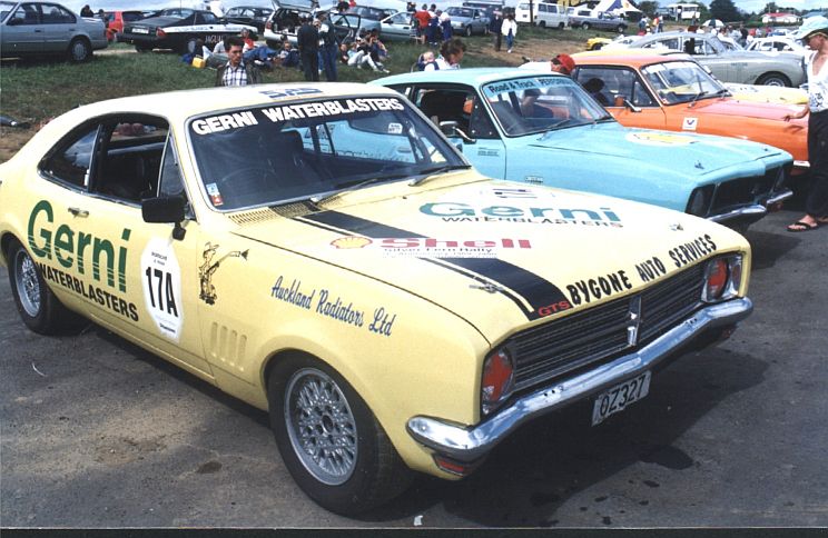 Vern Reeves is the other Torana -pastel blue green- has Road and Track on the screen and Duke Motorsport videos on the side.This parking are looks so bare without the garages there.Thanks to the generosity of Terry Siddel , Gerni Waterblasters name was on quite a few race cars then ,including his own car-black 1970 Mustang that Wymer currently owns