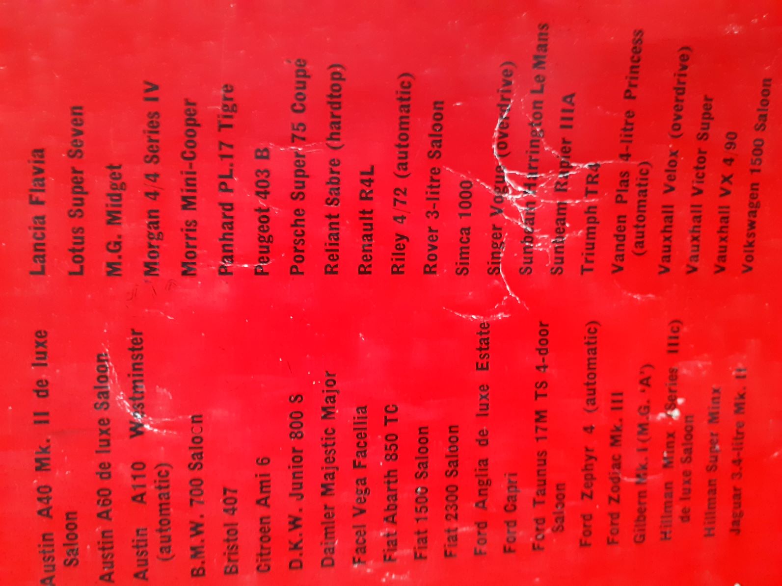 Have filled the gaps with the details of some of the cars shown. They are in order of issue 1 to 12.