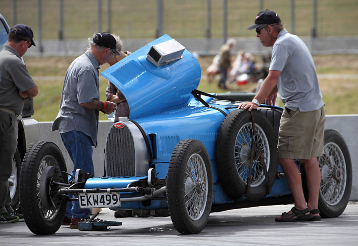 Look at all the room in the cockpit of the Alfa Romeo compared to that of the Bugatti. It is a tight squeeze even for Terry who is not a large man. Also remember that Ron used to store all his worldly possessions in the passenger compartment, including some large trophies that he had won, when he drove to the South Island to compete in the car.