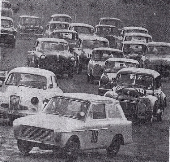 The Ardmore race for saloon cars over 1600 cc assembled as the rain started.