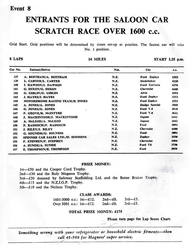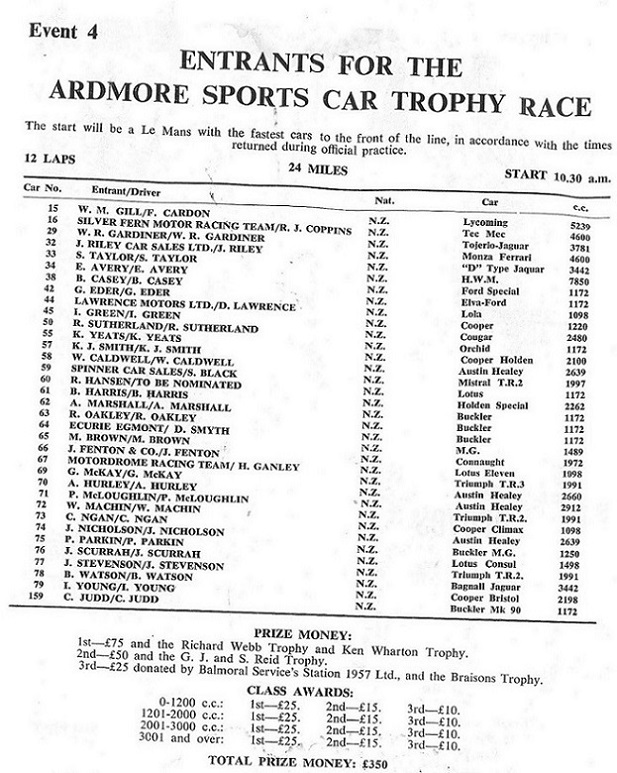 Thanks for that. Very nice of you KH. I didn't know the race had been short and as you say some didn't survive the year.. BTW I have that old program from Puke 1964. Would you like it? ... needs to go to a good home. Just email if you want it. hatz@xtra.co.nz Chrs John H