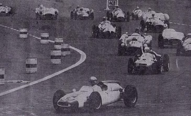 After one of his greatest drives Stirling beat everyone in dreadful conditions. It was also one of his last wins before a crash at Goodwood during 1962, ended his main racing career.