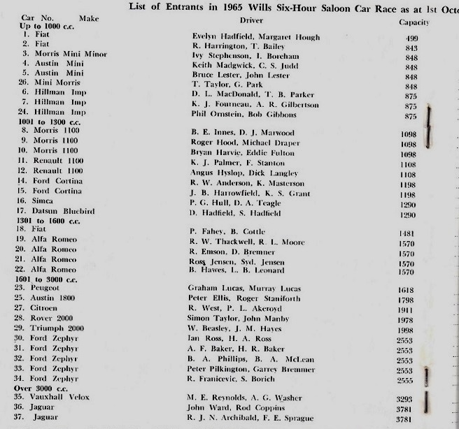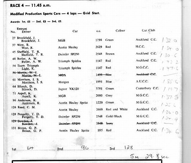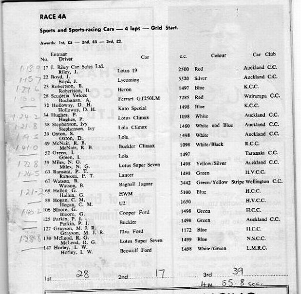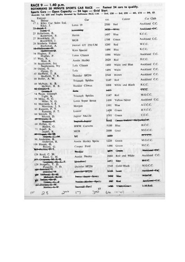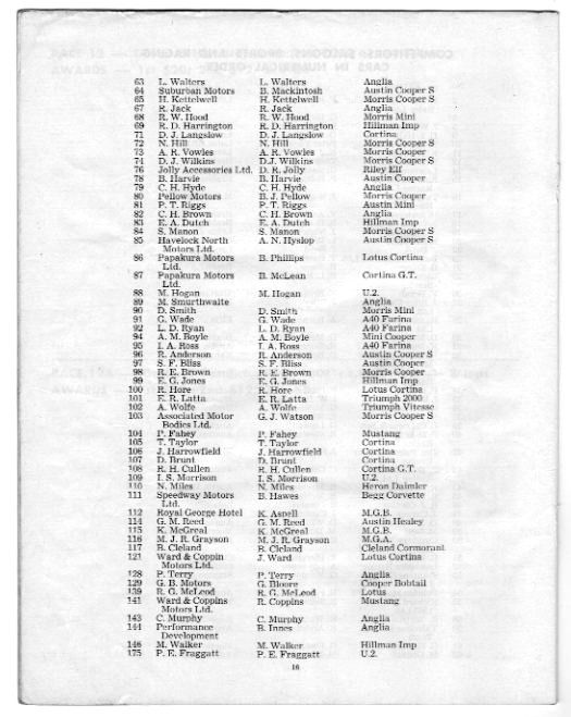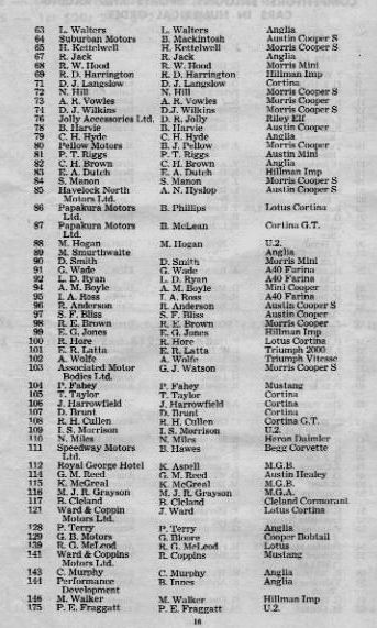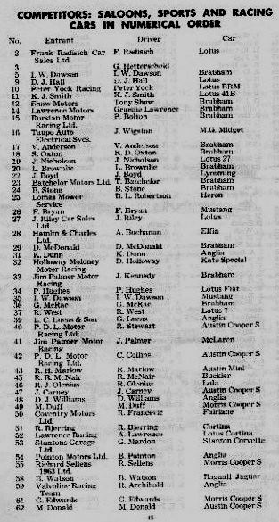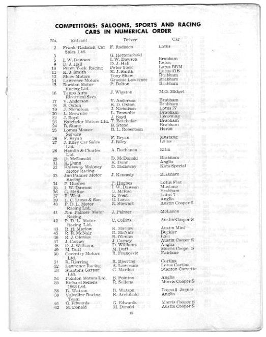 Pukekohe November 1967 Entry list presented by Milan Fistonich