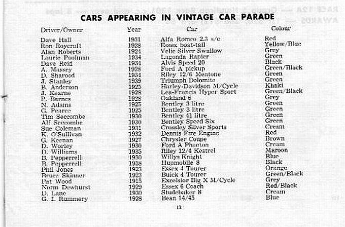 Thanks to Ross [ photo ] and Ken [ entry list ] for providing these thought they should be together.