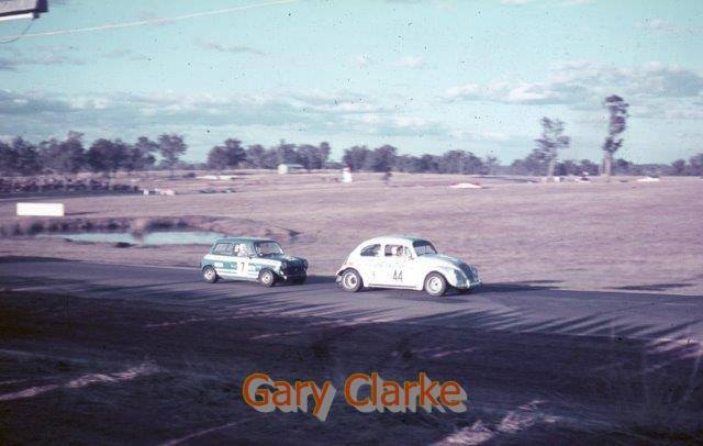 Pat Crea (or Darrylin Hewitt?) leading John Leffler at Oran ParkQuote: