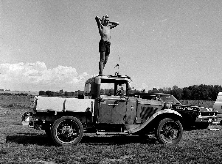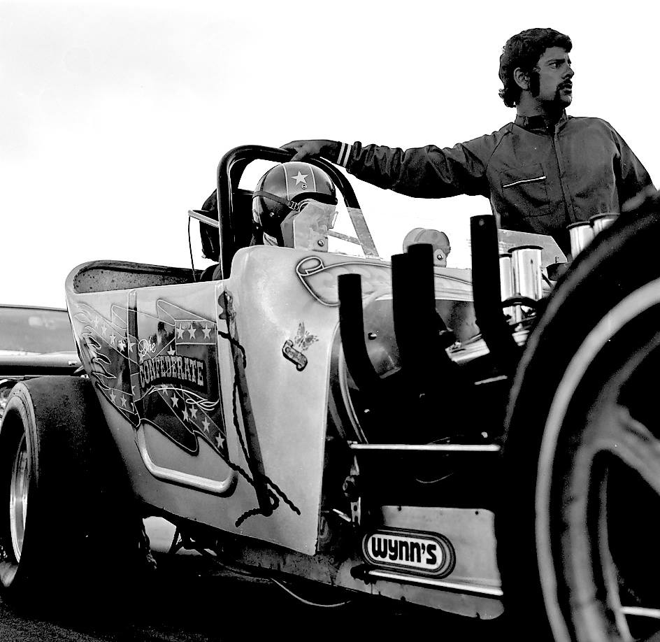 Awesome early GMC powered dragster was already a classic by the time this photo was taken, circa 1974.
