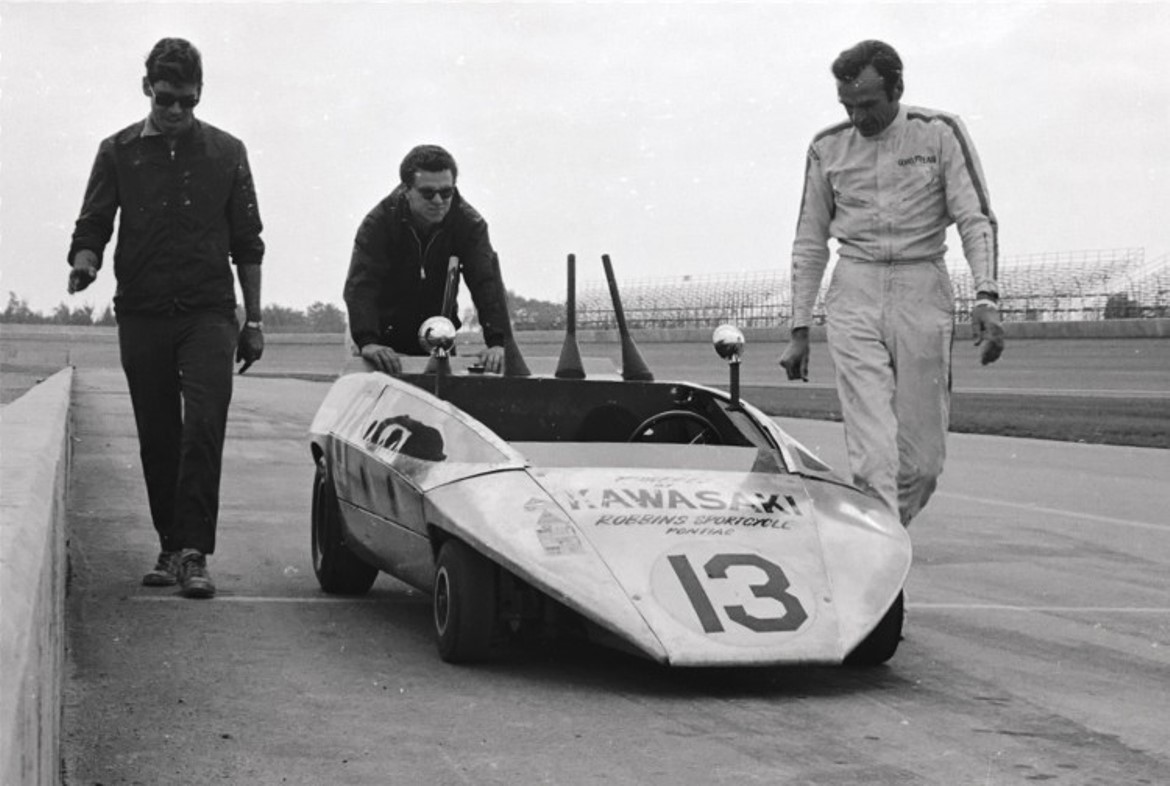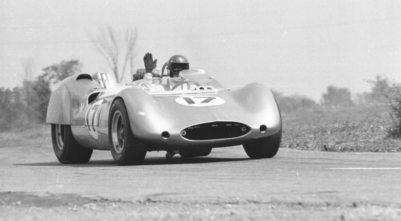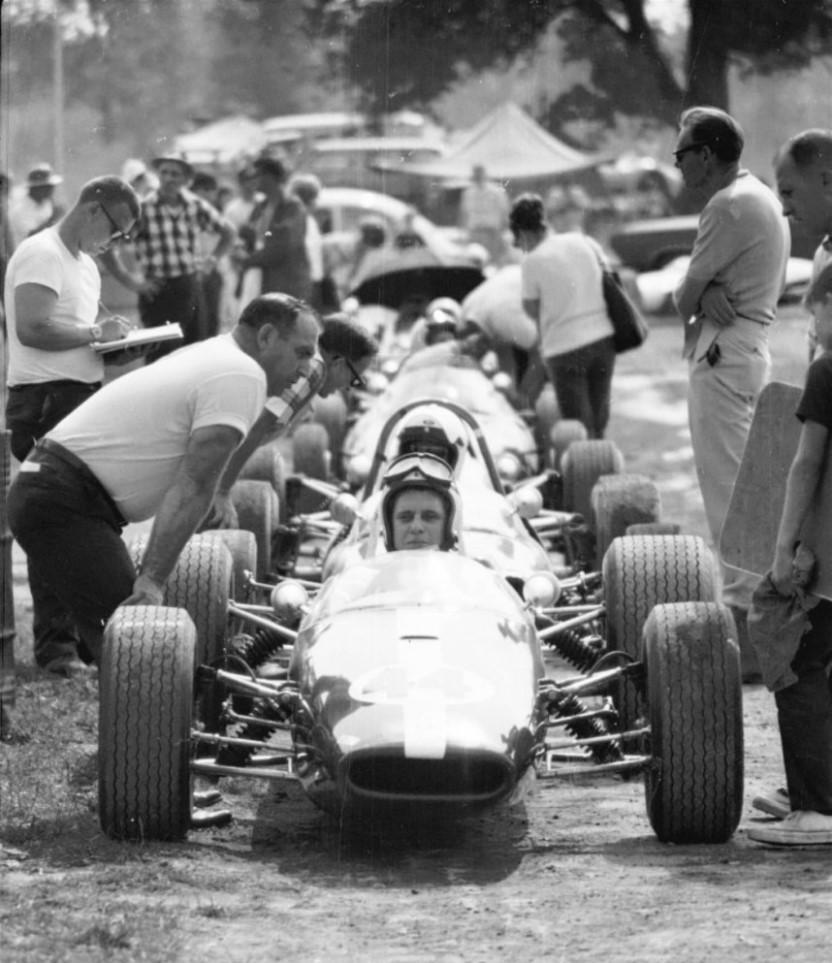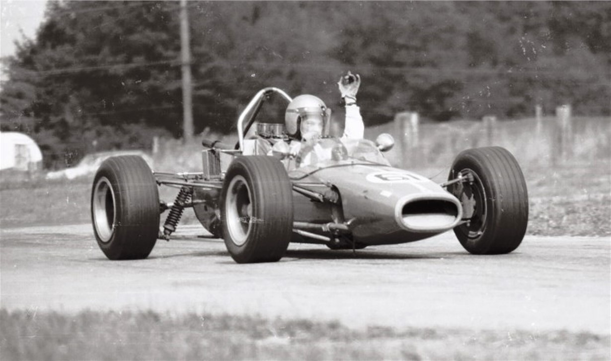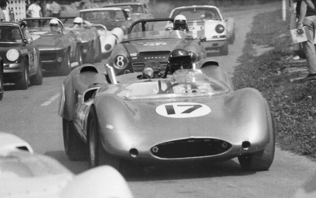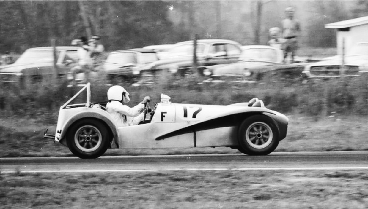The sports car race in 1968 at Steel Cities Raceway included a "Genie" Mark 8 with a Camaro V-8 engine, # 17 driven by Jack Ensley.