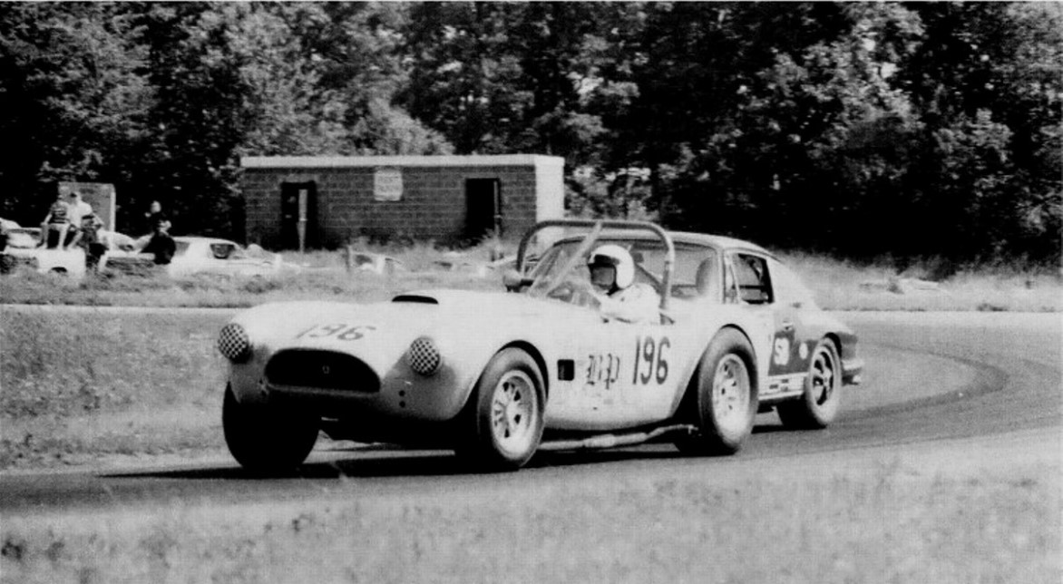 Although he tried his best the driver of this Shelby Cobra 289 # 196 had some difficulty keeping his machine on the track.