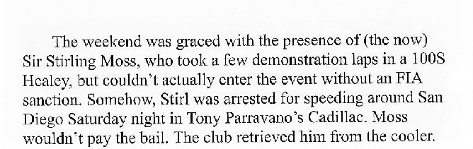 " I went to Riverside once after that with my daughter Pam and we sat there in the esses. And I said to her, 'I've gotta get out of here.' I was a freak sitting there watching a sport I loved but was no longer involved in. We left."
