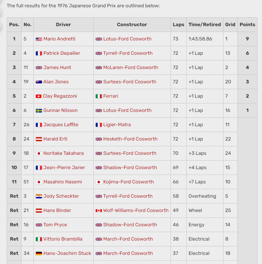 Noritake Takahara finished 9th in the 1976 Japanese F1 GP.