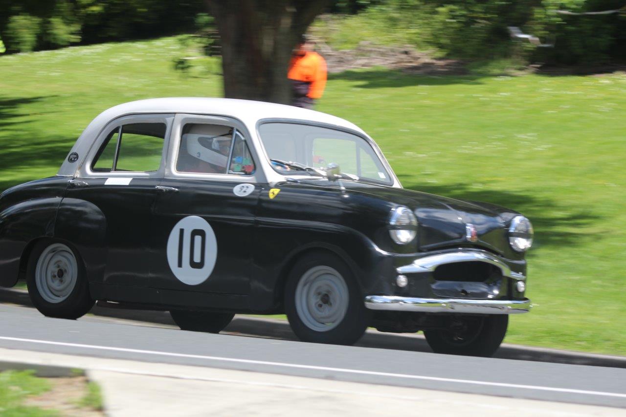 Humber Zephyr * [ see note ] of Frank Radisich leads a mixed bunch in including the Zephyr Corvette and the Morrari, an Anglia and Chev Coupe in the middle