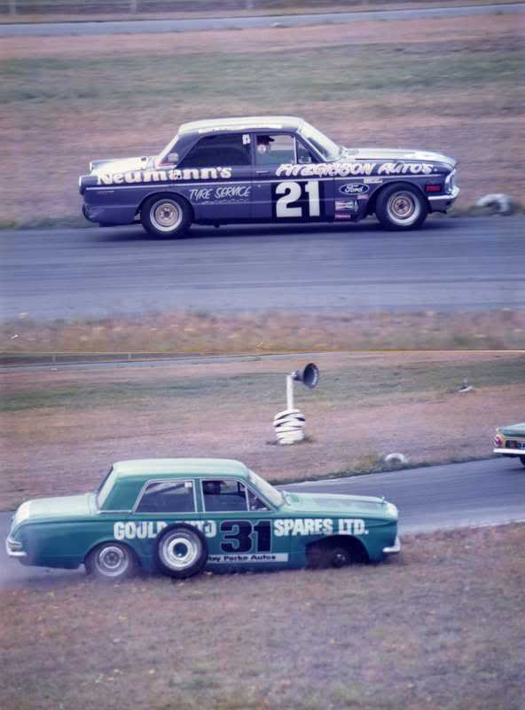 Top pic is Mike Fitzgibbon Falcon in Pre-65s at Timaru, raced 84-86, according to a writeup in the August 2009 Pre-65 newsletter. His son Peter races a Pre-65 Farina A40 today, according to a post on the Pre65SI Facebook page.
