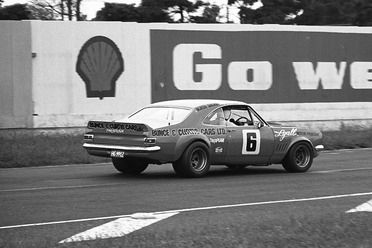 George Bunce leaving the chicane on the back straight at Pukekohe on 9 March 1975