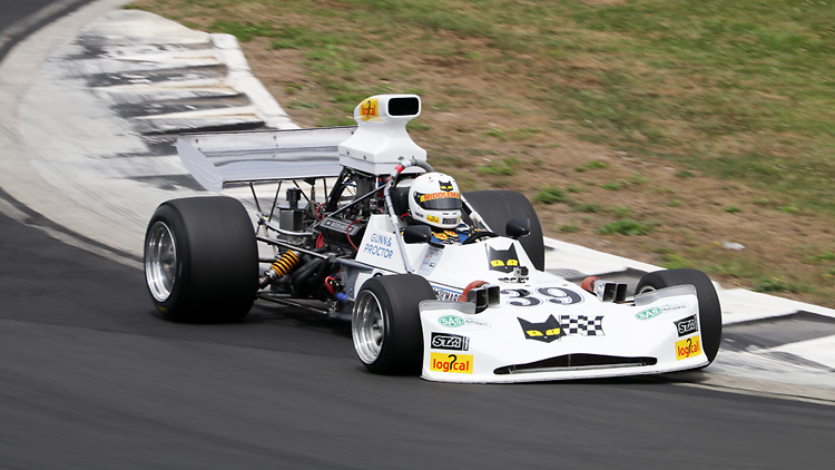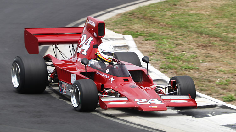 I can't pick a dud amongst all those lovely F5000s, but Peter Brennan's impeccable Lola T332 really does it for me. The poor bugger dragged it all the way over to Perth for round 1 only to have it grenade after a lap and a half of the very first practice (sob !) so it's great to see him back out there. Lovely job, mate. :cool: