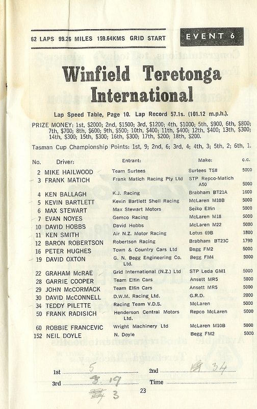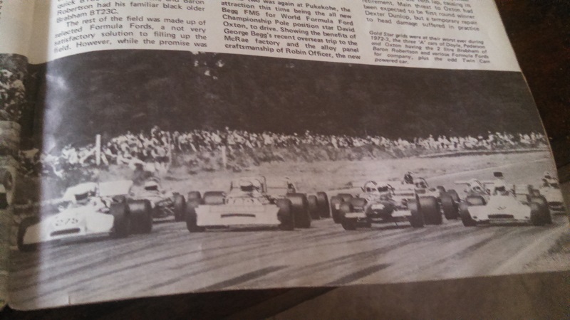 Ok, sorry, made an assumption. Here is Doyle's Begg on the outside of the front row of what I assume to be Ruapuna, round 3 of the 72/3 Gold Star, a change that took place between rounds 1 and 2, I quote from round 2 at Pukekohe 12/11/72 ...while Neil Doyle managed to coax his old FM2, now Tyrell nosed, Begg into third to make it an all-Begg finish.