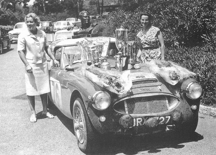 Anne Wisdom [ Riley ] and Pat Moss and their trophys around 1960 - with URX727 which was a works Rally car and features later in the thread in August 2023..